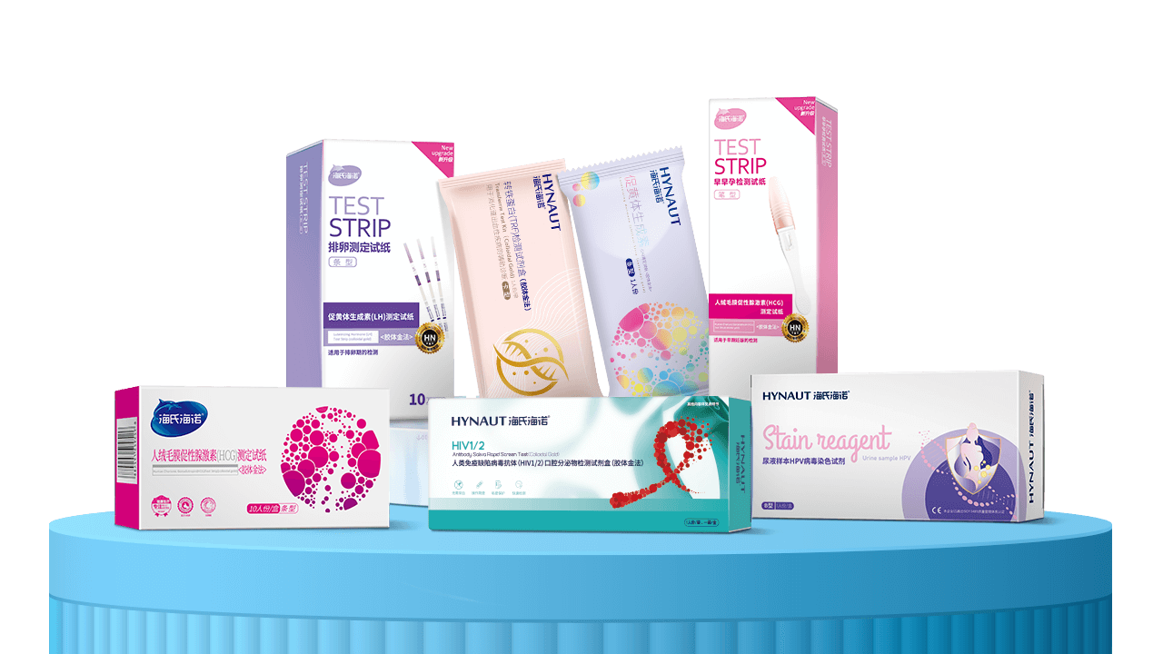 海氏海諾試紙檢測的產(chǎn)品,操作簡便快速、結果直觀易讀、特異性較高、成本低、便于攜帶和現(xiàn)場檢測。產(chǎn)品包含:早孕試紙、早早孕試紙、排卵試紙、尿常規(guī)試紙、HPV病毒染色試劑、HIV測試等產(chǎn)品。